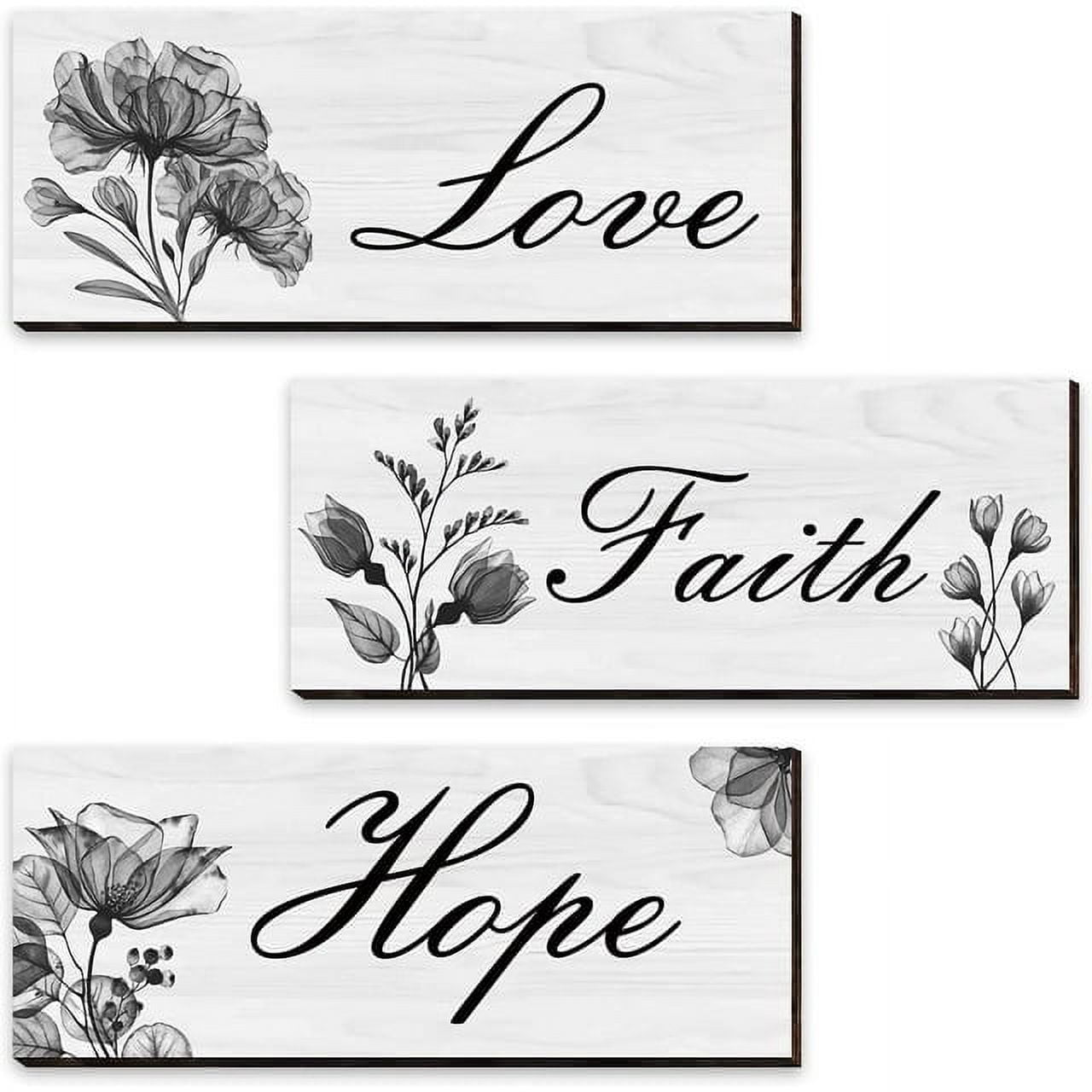 Fibevon 3 Pcs Flower Wall Decor- Wooden Wall Art-Motivation Quotes Sign Bathroom Decor, 12 x 4 inch(Black)